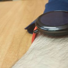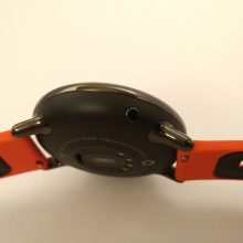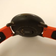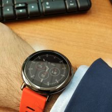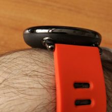Zegarek prezentuje się ładnie. Na szczęście Xiaomi zastosowało okrągłą kopertę. Okrągłe tarcze bardziej mi się podobają, choć mają swoje wady. Minusem jest grubość – nie zawsze zegarek chowa się pod rękawem koszuli. Pasek jest w mocnym, pomarańczowym kolorze, rzuca się w oczy. Szerokość paska to uniwersalne 22 mm, dzięki czemu można zmienić na każdy dowolny (ale nie zawsze znajdzie to zastosowanie, o czym za chwilę).