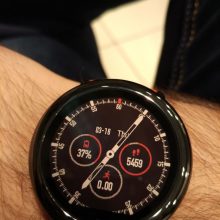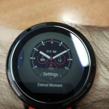 Ekran nie gaśnie. Jest cały czas włączony. Nie jest podświetlany, ale stale pokazuje czas. Podświetlenie załącza się poprzez ruch ręki, jaki standardowo wykonuje się podczas sprawdzania godziny. Jest czytelny, ale wydaje mi się, że kolory mogły być żywsze. Teraz są jakby nieco sprane, na pewno nie takie soczyste, jak na renderach. Oczywiście tarcze możemy zmieniać wedle upodobań. Wydaje mi się, że zdecydowanie bardziej pasują jakieś sportowe motywy. Na xda pojawiły się ostatnio narzędzia do tworzenia własnych tarcz (z cyferblatem i wskazówkami).