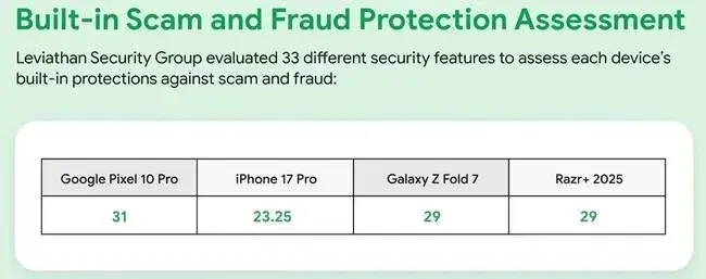 Z kolei test Leviathana, w którym porównano iPhone’a 17, Pixela 10 Pro, Moto Razr+ 2025 i Galaxy Z Fold 7, przyniósł jasny werdykt. Urządzenia z Androidem, a zwłaszcza Pixel 10 Pro, oferują najsilniejszą domyślną ochronę przed oszustwami i phishingiem.