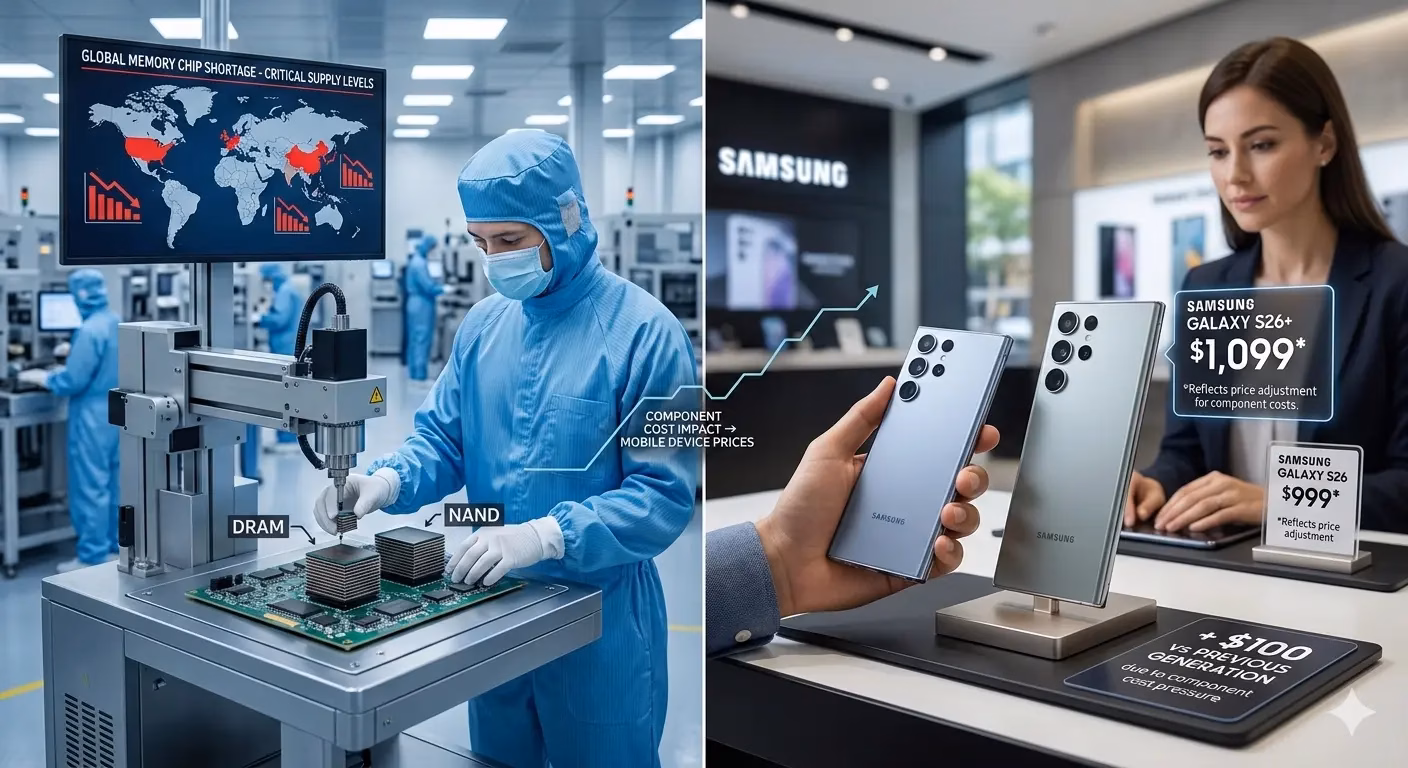 Wzrost kosztów komponentów wymusza na producentach korekty cenników, a pierwsze sygnały tej zmiany są już widoczne w segmencie flagowców. Nowe modele Samsung Galaxy S26 oraz Samsung Galaxy S26+ zadebiutowały w cenach wyższych o 100 dolarów względem poprzednich generacji, pomimo braku przełomowych innowacji technologicznych. To wyraźny sygnał, że presja kosztowa po stronie łańcucha dostaw zaczyna dominować nad klasycznym cyklem produktowym.