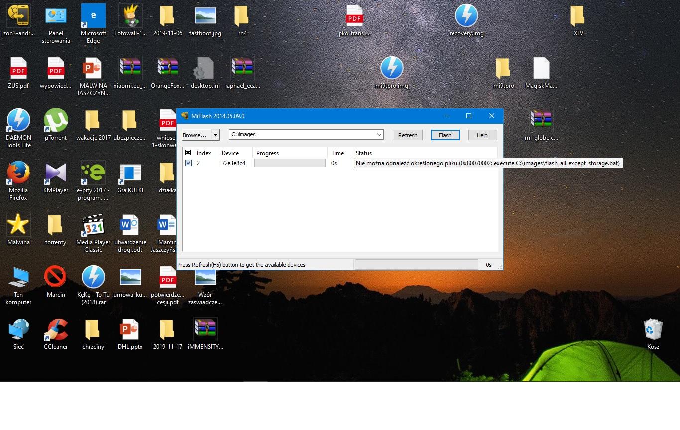 proszę pomóżcie wgrałem obraz dtbo przez twrp i telefon uruchamia się tylko do fastboot. nie można go inaczej uruchommić w twrp nie da się wejść. próbowałem przez adb wgrać twrp ale po wgraniu telefon uruchamia się do loga "mi unlock" albo fastboot i tak wisi. proszę co mam teraz zrobić? jak uruchomić telefon do twrp? w terminalu adb gdy daje "fastboot boot recovery"to mam komunikat " failed(remote: failed to load /autenthicate boot image: load error) finished total time 1.514s twrp wysyłą do telefonu prawidłowo tylko nie może uruchomić twrp. ściągnąłem rom pod fastboot ale nie mogę zainstalować mi flashem bo brakuje mi plików w folderze images.. skąd mam je pobrać? próbowałem przeinstalować mi flasha ale jakiś błąd mi wyskakuje. może mi ktoś podesłać te brakujące pliki z folderu images? najlepiej było by żebym dostał się do twrp. mam dane w pamięci których wolał bym nie usuwać ale jeśli pozostanie tylko wgranie miflashem to no cóż. proszę was o pomoc.