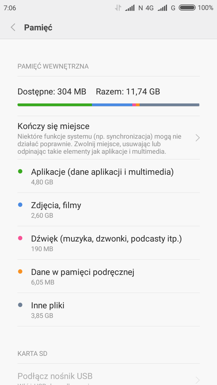 3. Dzisiaj rano zauważyłem, że mam dziwnie mało pamięci wewnętrznej. Wcześniej było to ok 14-15 GB. Co może być przyczyną? Korzystam z xiaomi.eu stable 7.2.7.0