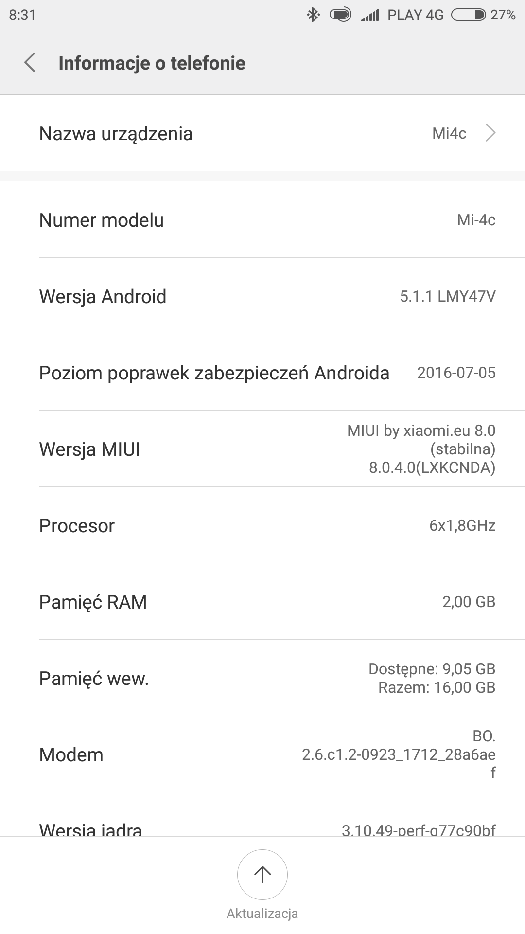 Witam. Kupiłem w aze telefon mi4c, poniżej podrzucam screen z informacji o telefonie. Wcześniej miałem Xiaomi Redmi Note 2 z MiuiPolska teraz już pogubiłem się w tym wszystkim i chciałbym dowiedzieć się jaki soft mam wgrany? Niby po kliknięciu w opcję: O MIUIPolska wyświetla się info, jednak w aplikacjach zamiast internet mam browser, kalkulator/calculator, filemanager i trochę zgłupiałem. Czy to po prostu jest niekompletne tłumaczenie czy może mam wgrany syfmiui? Nie mogę również zalogować się do konta xiaomi. Klikam w ustawienia/konta/mi i nic się nie dzieje. Jeżeli nie jest to miuipolska, to czy po pobraniu aktualnej paki z działu download, tj: MIUI 7.2.23 Android 7.0 ROM MI4c KOD libra Wrzucę to bez problemu przez aktualizator wskazując plik .zip? Chodzi o to, że mam wersję 8, a tutaj na stronie jest 7 i czy uda się zrobić downgrade i czy w ogóle jest sens instalować coś innego czy lepiej zostać przy tym? Z góry bardzo dziękuję za odpowiedź. Proszę bardzo o pomoc, a nie informację, że taki temat był już poruszany Czytałem bardzo dużo tematów, ale już się w tym wszystkim pogubiłem. Jestem czytelnikiem miuipolska od ponad roku, jednak to mój pierwszy post z prośbą o pomoc.