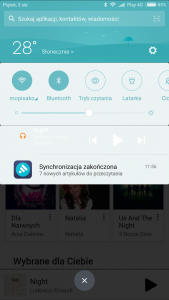 Wersja MIUI: 6.6.30 Posiadany smartfon: Redmi Note 3 Jakim użytkownikiem jesteś? Z długim stażem Opis znalezionego błędu Błąd nie jest poważny, tylko irytujący. Po rozwinięciu paska powiadomień, czcionka i guziki aplikacji Google Play Music są w kolorze białym. Ponieważ tło również jest białe, całość jest nieczytelna. Całość na screenie. Instalacja systemu była po full wipe, robiłem dwie aktualizacje, na każdej wersji jest tak samo. Zainstaluję dziś nową, ale nie spodziewam się zmiany. Aplikację kilka razy instalowałem i odistalowywałem. Zmiana motywów również nic nie poprawiła. Wszystkie inne aplikacje poprawnie się wyświetlają. -