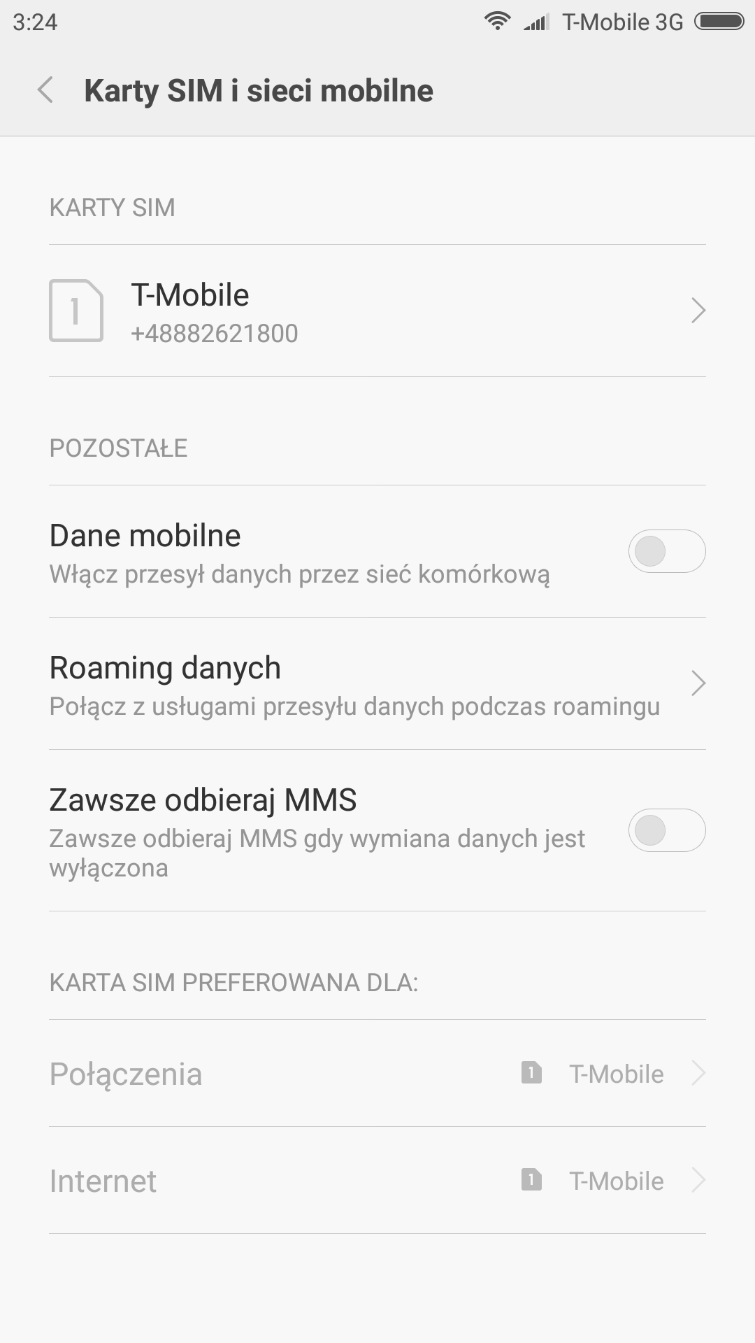 Problem z ustawieniami sim (są nieaktywne i na szaro)
