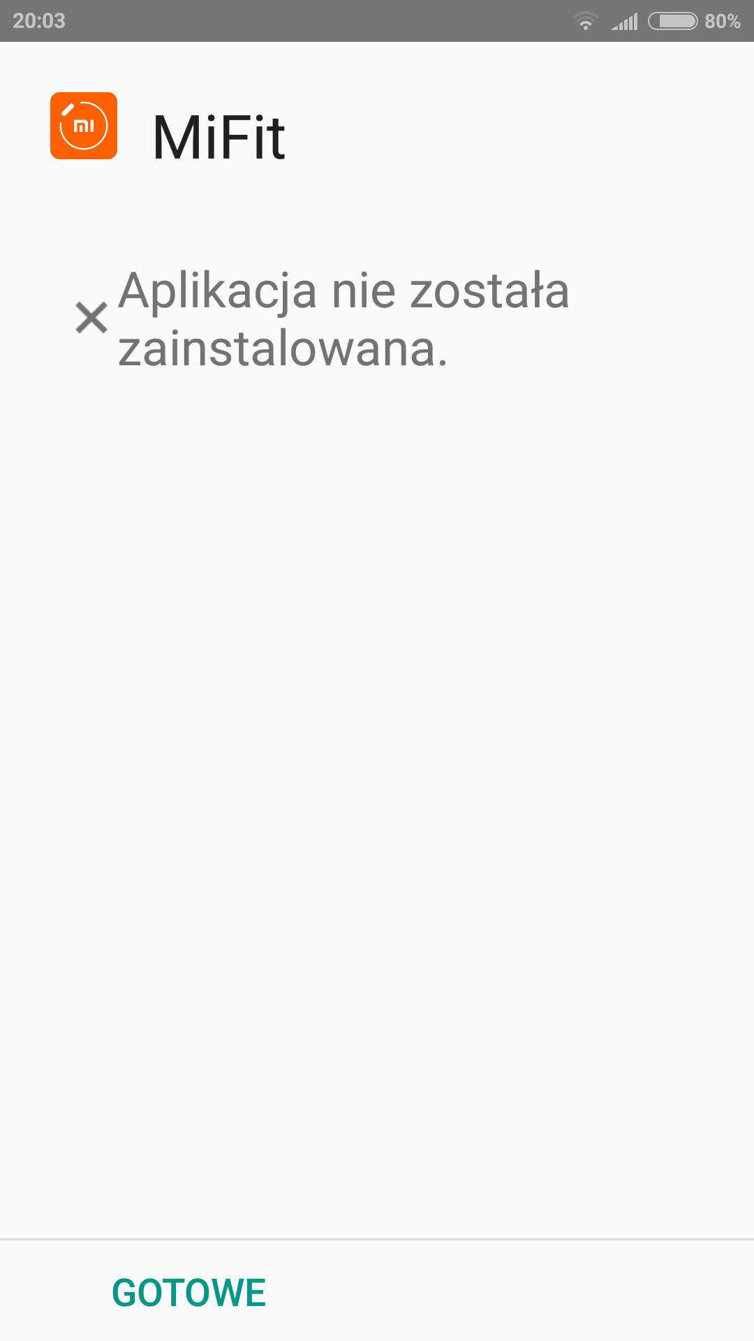 Witam Wersja aplikacji MiFit to 1.8.711. Aktualizacja aplikacji Mi Fit z GP jest nie możliwa (odinstalowanie również), wyskakuje komunikat jak na zrzucie z ekranu, wgranie Mi Fit ściągnietej z MIUI Polska,również nie udana, już nie wiem co mam robić... Wszystko jest związane z parowaniem telefonu Mi 4 z opaską Mi Band 2 zakupioną w sklepie Technos. Telefon ma małżonka od marca tego roku, wersja oprogramowania MIIUI POLSKA 6.3.3 v. Android 6.0.1 Proszę o pomoc i podpowiedzi.