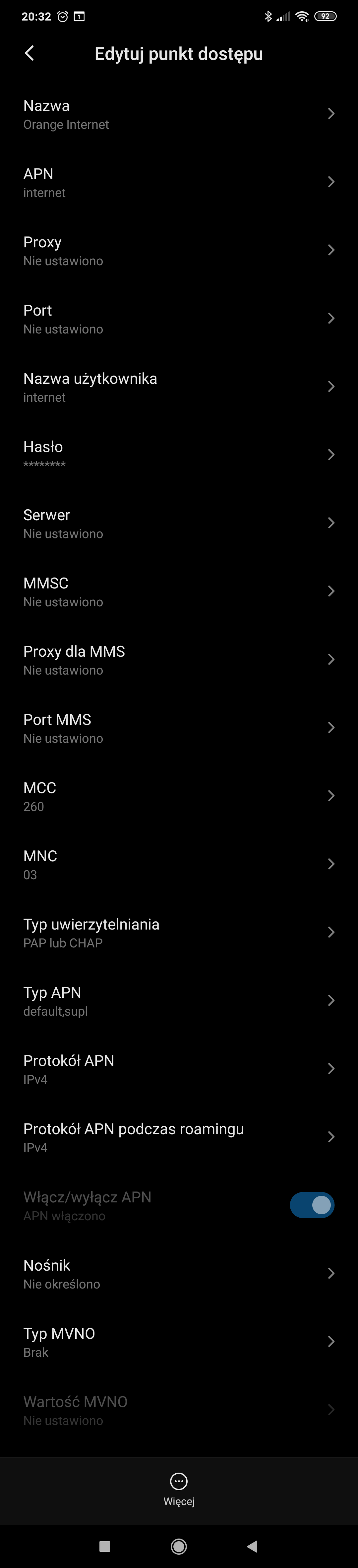 No i przetestowane. Brak efektu Co ciekawe, dorwałem drugi identyczny telefon - REDMI NOTE 8T Dokładnie te same objawy. Żadna karta orange/njumobile nie ma internetu w trybie "preferowany 3g". LTE działa dobrze, a 3g nie ma internetu W *#*#4636#*#* sprawdziłem wszystkie możliwe typy połączeń - internet działa tylko dla LTE Jedną z kart sim wymieniłem na nową - bez efektu Podsumowanie - dwa identyczne telefonu, dwie karty orange/nju - nie ma internetu w 3g, w LTE jest karta T-mobile - jest internet w 3g -