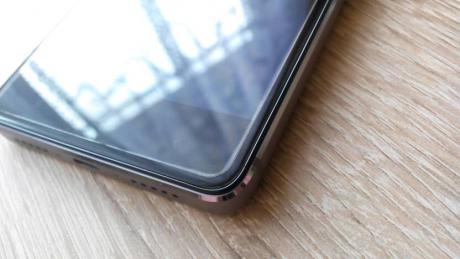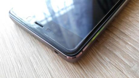 Jest powyżej. Założone mam szkło FG 3mk, ma 0.2mm grubości, większość szkieł ma 0.3mm, również będą poniżej rantu. Wysokość rantu to 1mm z groszem.