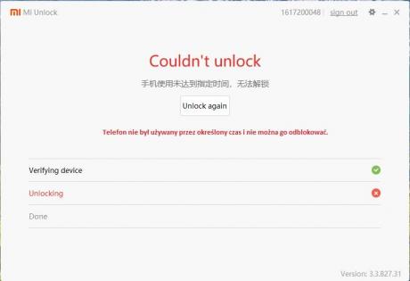 Hej, Odczekałem wymagany tydzień na zgodę na zdjęcie bootloadera. I dostaję error jak na screenie. Nie miałem takiego problemu przy odblokowywaniu Mi5, Mi6 czy Mipada. A tutaj taki zonk. Debugging USB włączony, powiązane konto w ustawieniach programistycznych...