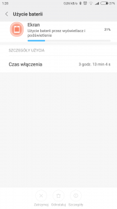 To i tak słabo biorąc pod uwagę, że na 7.5.3.0 uzyskiwałem około 7-8h SoT. Z tym, że to były moje początki z tym telefonem, więc nie pamiętam czy to było syfmiui, czy rzeczywiście jakaś oficjalna wersja. Potem zmieniłem na 8.0.1.0 i też SoT był podobny. A teraz wgrałem już oficjalny z pewnego źródła rom i też SoT mi bardzo zmalał i utrzymuje się w granicach 5-6h. Kiedyś 2 całe dni mogłem używać bez ładowania. A teraz co z tego, że na koniec dnia mi zostaje 45% baterii, skoro z baterią będzie cienko już koło 16 następnego dnia. To już wolę codziennie ładować, żeby działał nawet od bladego świtu, do późnej nocy. A kiedyś nie musiałem ładować codziennie, a raz na 2 dni. I wtedy 2 całe dni byłem w stanie używać telefonu. Prądu domagał się dopiero około 22 dnia drugiego.