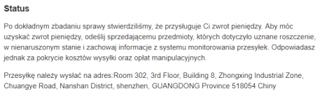 Będę musiał odesłać wadliwy przedmiot do GB. Mam nadzieję, że PP mi zwróci koszt przesyłki. Moje pytanie to jak wypełnić poprawnie nadanie paczki żeby trafiło pod adres podany przez GB tj.: