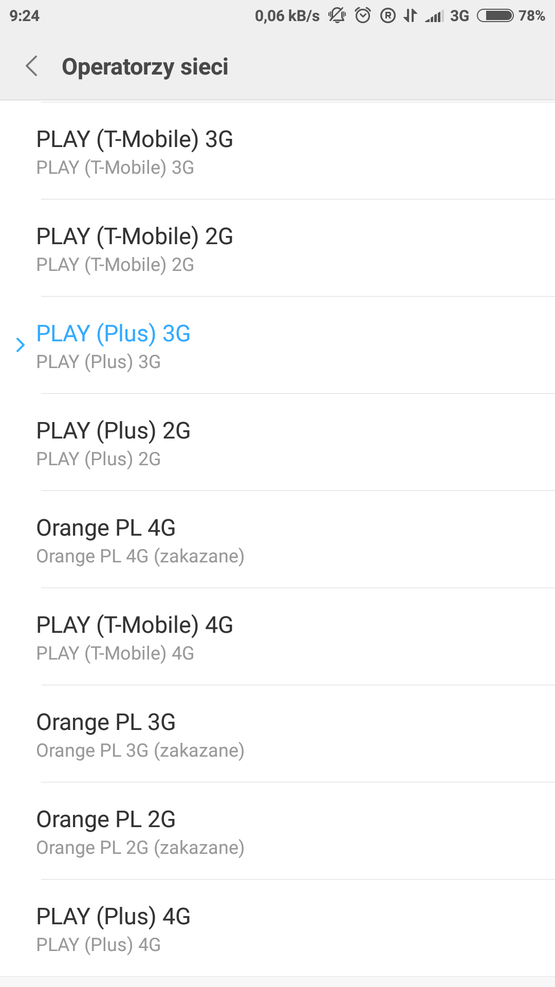 Mam do wyboru tylko te, i nie mogę zmienić na sieci 4g bo przełącza się od razu na 3g. W innych telefonach internet działa normalnie np. redmi note 3 pro.