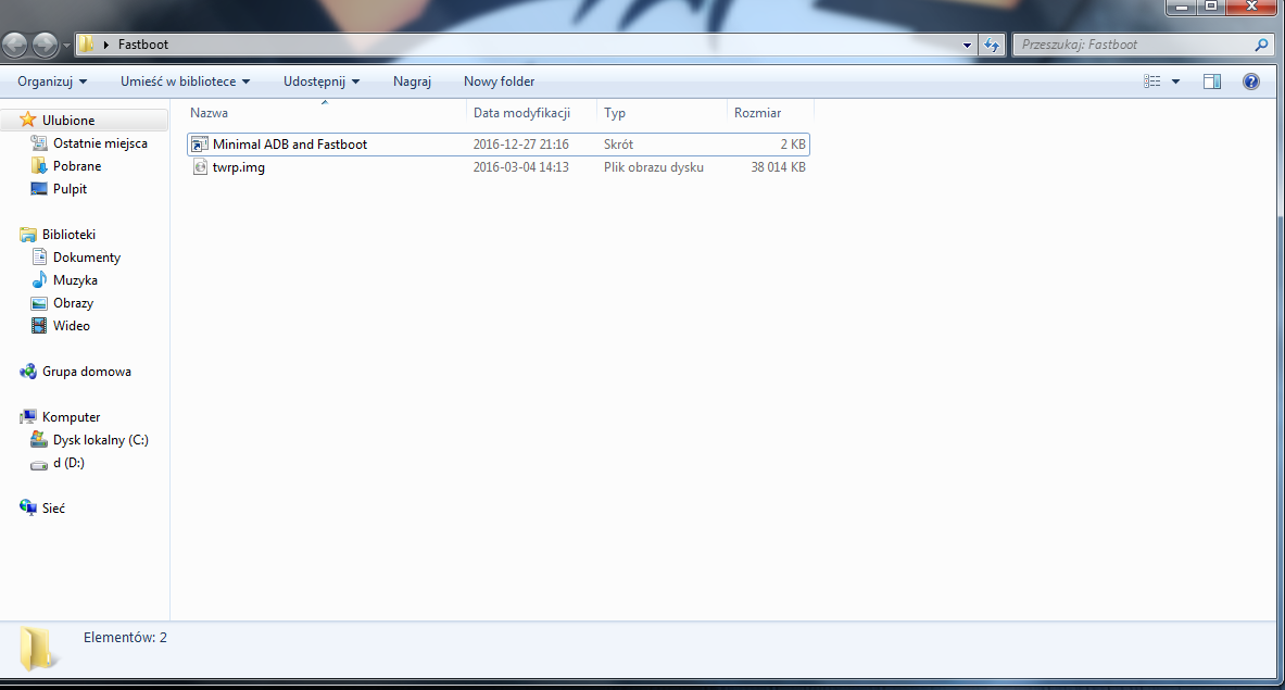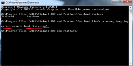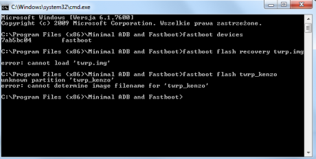 Więc tak robię wszystko według wskazówek: Instalujemy Fastboot wg FAQ - udało się Umieszczamy pobrane wcześniej recovery (twrp.img) w katalogu z fastboot.exe - i tutaj nie rozumiem co mam zrobić, wyjaśni ktoś? Otwieramy wiersz poleceń (ctrl+shift+prawy przycisk myszy w oknie eksploratora) Przechodzimy do fastboot na telefonie (przycisk głośność-dół + power) Sprawdzamy obecność urządzenia fastboot devices (musi się pokazać ID) Następnie: fastboot flash recovery twrp.img