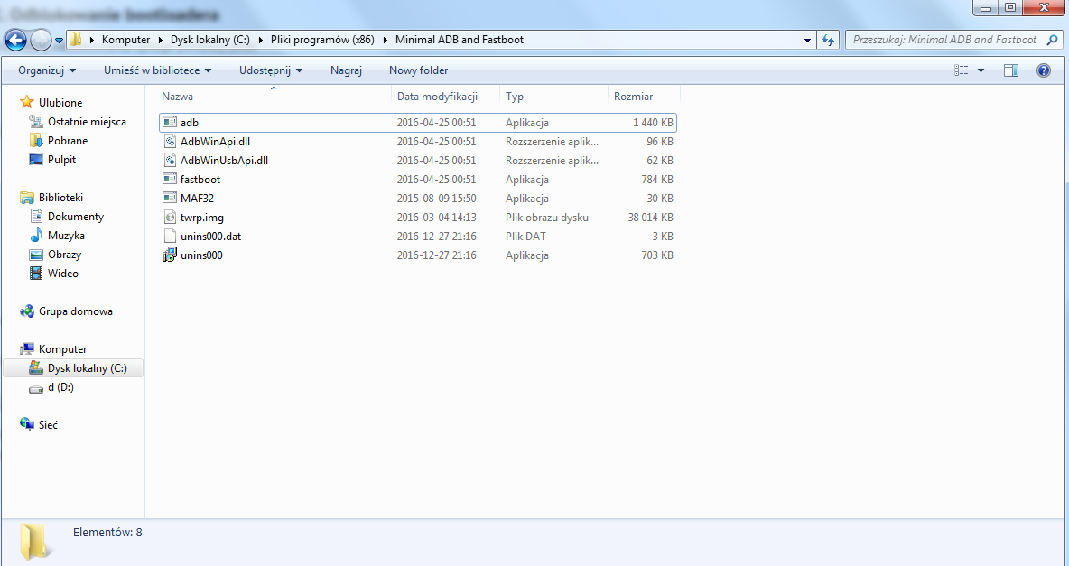 Więc tak robię wszystko według wskazówek: Instalujemy Fastboot wg FAQ - udało się Umieszczamy pobrane wcześniej recovery (twrp.img) w katalogu z fastboot.exe - i tutaj nie rozumiem co mam zrobić, wyjaśni ktoś? Otwieramy wiersz poleceń (ctrl+shift+prawy przycisk myszy w oknie eksploratora) Przechodzimy do fastboot na telefonie (przycisk głośność-dół + power) Sprawdzamy obecność urządzenia fastboot devices (musi się pokazać ID) Następnie: fastboot flash recovery twrp.img - i przez to nie mogę zrobić tego punktu