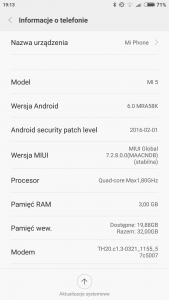 3. Cześć, Zanabyłem ostatnio Mi5 w polecanym przez forumowicza JoyBuy z przesyłką bez vatu, faktycznie przyszedł w terminie i ominął urząd celny. Jedynie rom coś szwankuje: gubi zasięg, nie trzyma nawet dnia na baterii, zdarzają się przycięcia... Na screenie poniżej są informacje o moim telefonie. Przeczytałem w poradniku na xiaomitips.com że taka liczba cyfr i CN w opisie mówią, że jest to wersja developerska romu chińskiego. Czy to by się zgadzało? Miałem od razu Google Play co podobno w parze z tym CN oznacza rom modyfikowany przez sprzedawcę. Jeślito faktycznie wersja developerska przy której ktoś już grzebał, czy droga do romu global jakoś się zmienia? Czy może mam już np. Odblokowany albo ułatwione odblokowanie bootloadera? Przepraszam za być może oczywiste pytania, pomimo rozeznania w temacie (zaczynałem przygody z flashowaniem od HTC Dream) nigdy nie jestem pewny co Chińczyk miał na myśli, zarówno producent jak i sprzedający.