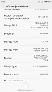 Witam, dotarł do mnie mój Xiaomi Redmi 3S 3GB/32GB i ma MIUI Global 7.8 (stabilna) 7.8.21.8 (MALCNDE).