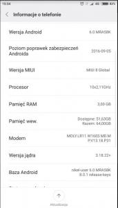 Tak wyglądają informację dot. systemu w moim telefonie.
