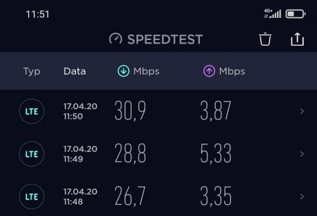 No internet teraz trochę słabszy, zwłaszcza wysyłanie. Jednak u mnie w Plusie znacznie lepsze wyniki (Mi8).
