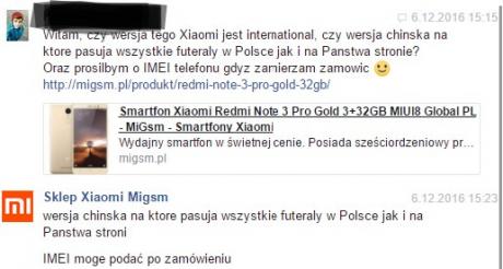 Planowałem zakupić w tym sklepie Redmi Note 3 Pro 3/32, jednak po skontaktowaniu się ze sklepem spotkałem się z trochę dziwnym podejściem do klienta. Na samym początku chciałbym powiedzieć, że nie skreślam firmy, może właśnię taką politykę stosują, ale postanowiłem, że przedstawię tę sytuację.