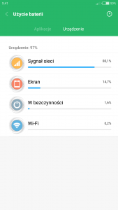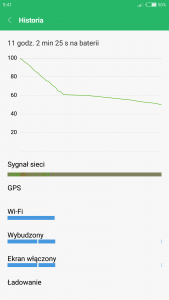 18. Od 6 do 9h i właśnie spadek waha się tak 10-15 % w tych godzinach. I to jest właśnie normalny spadek jak u Ciebie =) Jest coś w ustawieniach co może odpowiadać za taki stan rzeczy? Może mam coś właśnie tam źle. Dodam jeszcze, że wipe robiłem po każdej aktualizacji miui.