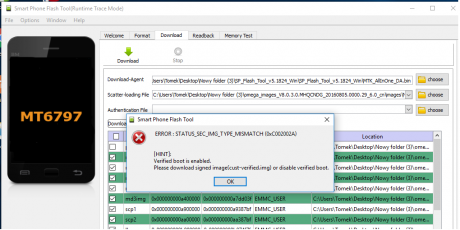 3. Cześć, telefon uruchamia się tylko do loga MI. Bootloader jest zablokowany. Próbowałem wgrywać ROM przez SP Flash ale niestety ciągle mam taki problem jak na zdjęciu. Próbowałem sposobu z http://en.miui.com/thread-371349-1-1.html i nadal to samo.