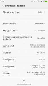 1. Czesc Z gory przepraszam za brak polskich znakow, komputer z ktorego teraz korzystam nie oferuje takich luksusow. Mam telefon Xiaomi Redmi Note 3 od jakiegos czasu. Chcialbym go w jakis sposob zaktualizowac, ale nie potrafie. Przeczytalem wiele watkow, zadnego nie rozumiem. Probowalem aktualizowac androida, nie udalo mi sie, probowalem aktualizowac ta nakladke MIUI - nic z tego. Mysle ze nawet poradnik dla debila przekracza moje zdolnosci pojmowania co sie dzieje z tym telefonem. Chcialbym go zaktualizowac dlatego ze wiekszosc aplikacji przestala dzialac, albo dziala coraz gorzej wraz z kazdym update'm. Obecnie w informacjach o telefonie mam napisane tak: Wersja Android: 5.0.2 LRX22G Wersja MIUI: MIUI 7 6.2.25 (rozwojowa) Czy ja moge cokolwiek tu zmienic? Domyslam sie ze takich tematow bylo kilka, przegladalem watki, ale nie za bardzo rozumiem co jest tam napisane. Czy ktos bylby w stanie odpowiedziec mi na pytanie: Czy ja moge zaktualizowac ten telefon do nowszej wersji Androida? Jesli tak to co musze zrobic, krok po kroku. Z gory dziekuje i pozdrawiam!