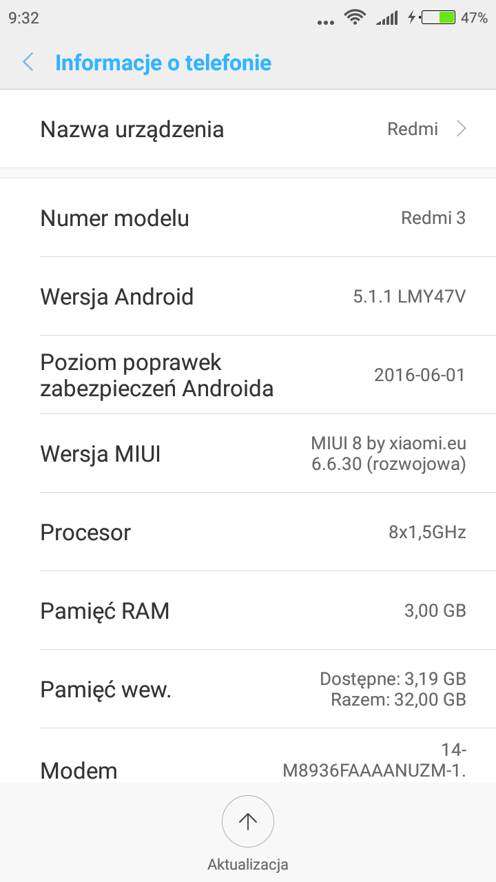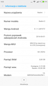 6. Witam serdecznie! Od ponad pół roku posiadam Redmi 3 pro (pierwszy smartfon z androidem na pokładzie), ale nie bawiłem się jeszcze nigdy w aktualizowanie (w załączniku informacje systemowe). Szukałem już poradników, ale wolałbym przy pierwszym update'cie nie zepsuć sobie telefonu . I teraz moje pierwsze pytanie - od czego zacząć i jak? Aktualizacja androida? Jakoś nie chce mi się wierzyć, że wystarczy pobrać najnowszą wersję miui i zainstalować aktualizerem. (No właśnie i jeszcze jedno - nowe update'y miui są dla każdego telefonu xiaomi? Czy dla niektórych już nie wychodzą?). Dzięki za pomoc z góry!