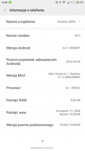 Wykonałem pełny wipe i factory reset i zainstalowałem wersję stabilną xiaomi.eu ... to samo, w dodatku z błędem "E: unknown command [log]"