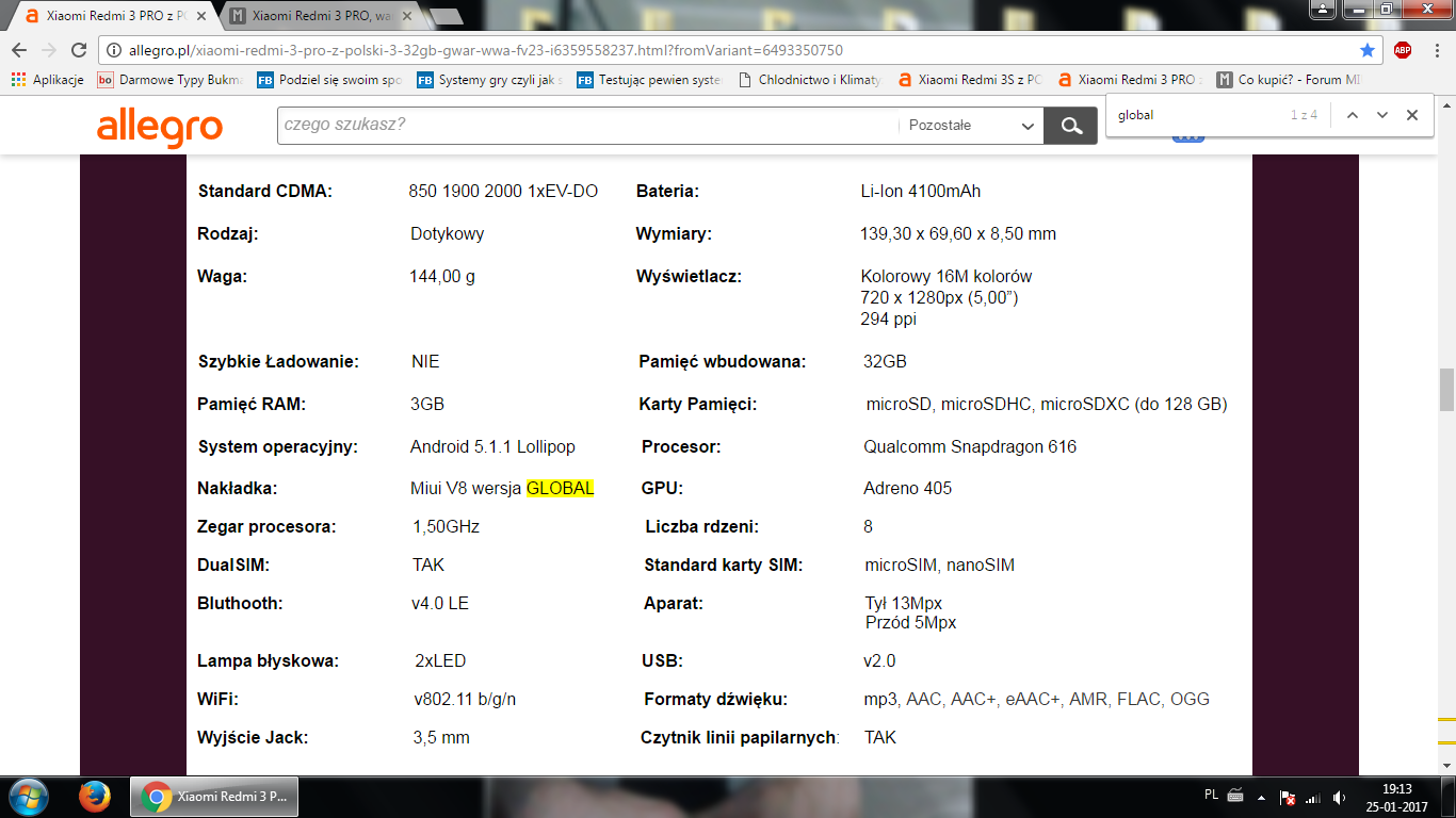 Wstępnie znalazłem taką aukcję: http://allegro.pl/xiaomi-redmi-3-pro-z-polski-3-32gb-gwar-wwa-fv23-i6359558237.html?fromVariant=6493350750