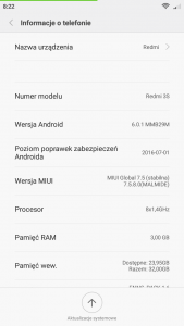 11. Witam, Jestem świeżym posiadaczem tego modelu, i nowy na forum, witam wszystkich serdecznie. Po 2 tygodniach kręcenia gościa który miał mi sprzedać nowy Redmi3Pro, stwierdziłem, że nie ma sensu, i dołożyłem 100zł i kupiłem 3S w X-kom Wrocław. I moje pytanie, czy te parametry systemu są dobre? Mogę aktualizować do MIUI8, ale nie wiem czy to robić. Czy ta wersja oprogramowania jest prawidłowa? W FAQ wyczytałem, że global jest w porządku. Ale proszę o potwierdzenie. I pytanie extra, mam 3GB ramu, i mam wolne ok 1,7-1,9GB. Aplikacje zamknięte, czy coś trzeba jeszcze poustawiać, wyłączyć zbędne aplikacje? Oświeci mnie ktoś co oznaczają te 3 kropki przy wskaźniku Wi-Fi? Czasami pojawia się jeszcze znaczek 2 kółek z małym trójkątem w nich, co to jest? A bateria normalnie kozak. Odebrałem go miał 72% naładowania. 4h włączonego ekranu, 9h wifi, czas pracy 22h, i mam 50%. Zobaczymy w pracy, potrafię 3h na 8h przegadać.