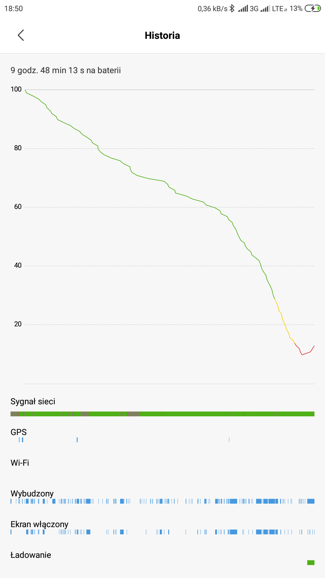 W załączniku wrzucam screeny z "Użycia baterii" i wykresu jej użycia.