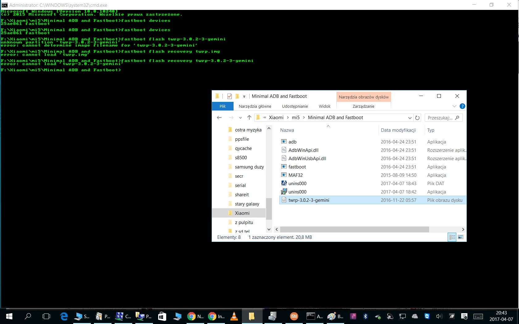 5. Witam. jestem po odblokowaniu bl. Problem w tym że minimal adb nie widzi mi fona w trybie flashboot natomiast miflash widzi go. Mam win10 i sterowniki 7.1 chciałbym zainstalować twrp. i nie wiem co z tym zrobić. Pomoże ktoś?