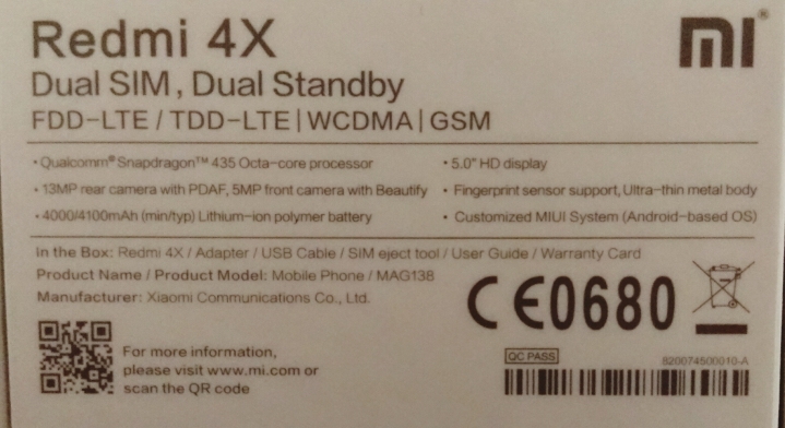 Witam, Od nie dawna jestem posiadaczem Xiaomi Redmi 4x, zakupiony został w markecie RTV Euro AGD. Proszę o opinie odnośnie znaku CE na tylnej obudowie telefonu ponieważ mam zastrzeżenia co do jego oryginalności.