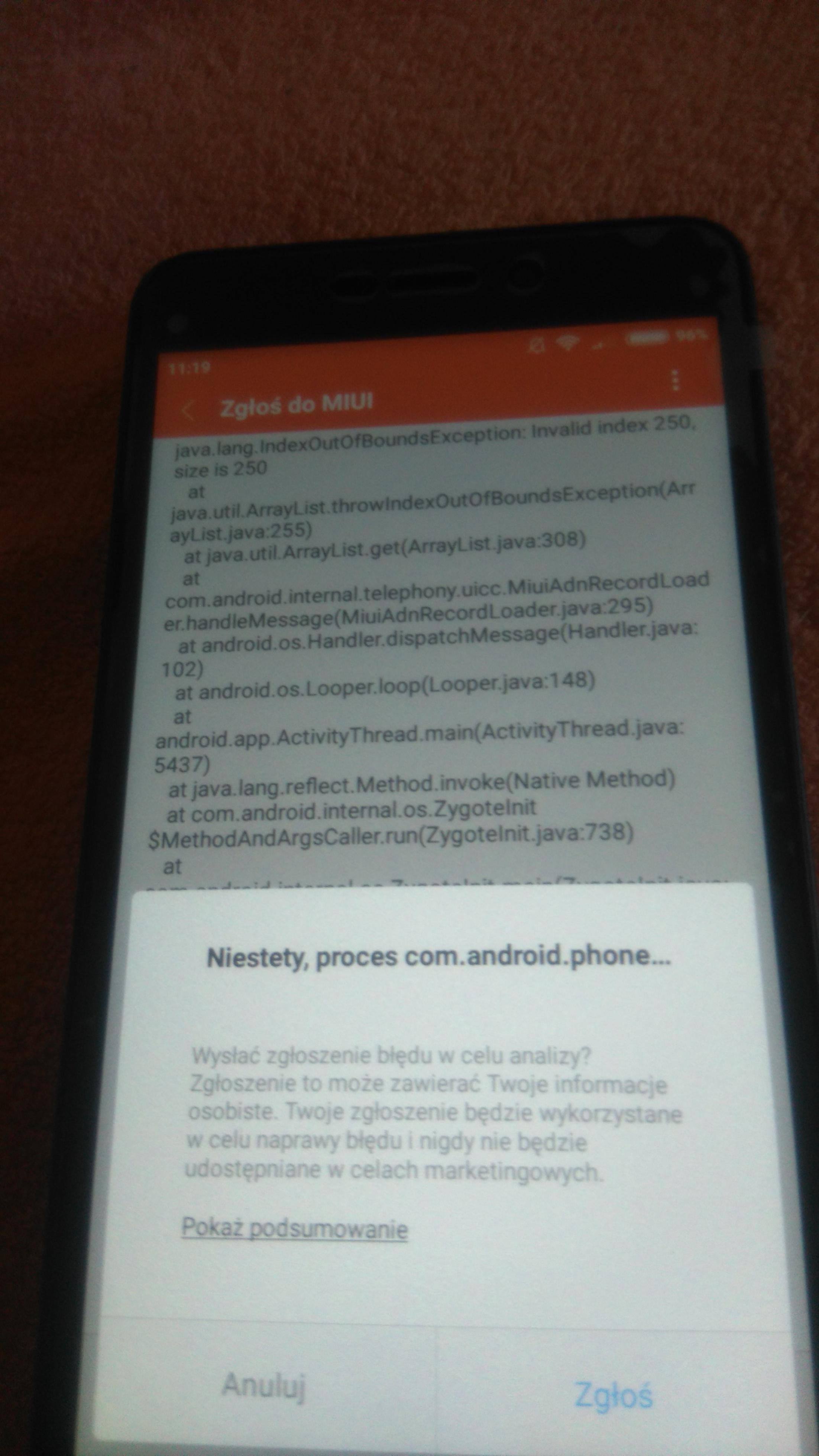 Witam. Po włożeniu karty z play jako Sim1 jest ok. Gdy wkładam drugą kartę Sim2 z T-mobile czyta te dwie karty przez chwilę ,parę sekund pojawia się zasięg i nagle pojawia się komunikat "proces android.phone został zatrzymany" ( widać to na załączonych fotkach) zasięg znika,nie wykrywa kart obydwu,po czym po paru sekundach znowu wykrywa obie karty i po paru sekundach znikają .i tak w kółko ciągle. Co ciekawe po włożeniu tej karty z T-mobile jako jednej solo dzieje się tak samo wykrywa ją przez parę sekund a pożniej znika. Kontakty z karty Play pojawiają się a z T-mobile nie pojawiają na telefonie. Bardzo proszę o pomoc bo nie wiem co robić.Czy mam coś zmienić w ustawieniach,oddać telefon na gwarancji czy oddać go całkowicie( kupiłem go 13.6.2017) Zaznaczę że te obywie karty Sim dobrze działają na innych urządzeniach.W tym telefonie mam wersję Global.Nie jest konieczna wersja polska. Proszę o wyrozumiałość bo nie miałem z tym systemem nigdy stycznośći