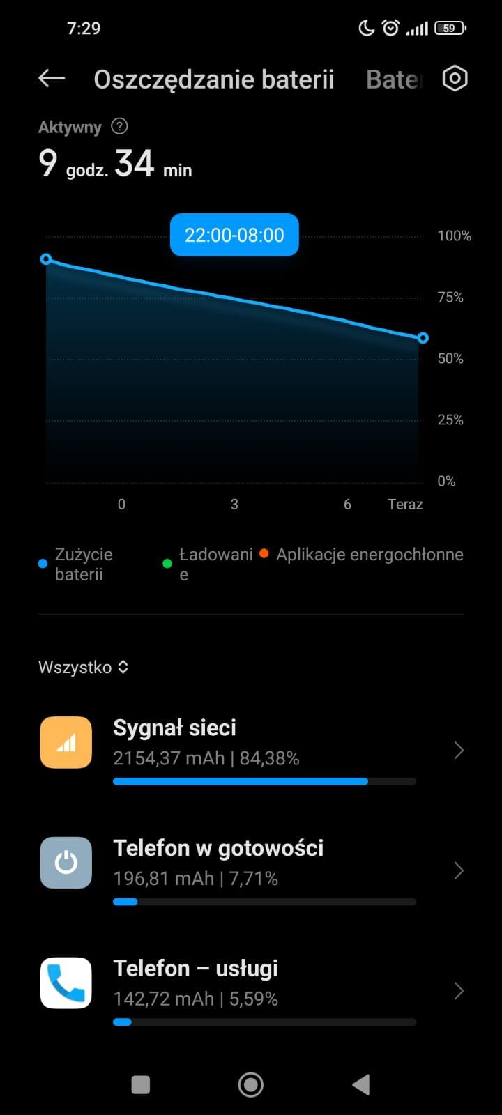 Na Mi 10T 5G wyłaczona druga karta sim , nawet wyciagnięta z telefonu nic nie dała. bluetooth zawsze wyłaczony , zawsze na noc staram sie aby wifi był wyłączony , właczone oszczedzanie energi w xiaomi jest to systemowe. Byla próba pozostawienia wifi + caling , wyłaczone oszczedzanie enerii, reset głowny telefonu przez recovery Przez pare lat było jak powinno , linia na skali pozioma Ale na drugim telefonie w tym samym miejscu w pokoju xiaomi redmi 9 Pro wlaczona druga sim , włączony bluetooth na noc + Wifi +dane komórkowe sygnał sieci sprawdzane *#*#4636#*#* tez taki niski na pododnym poziomie ALe nie drenuje baterii linia na wykresie w aplikacji bateria jest prawie pozioma . -
