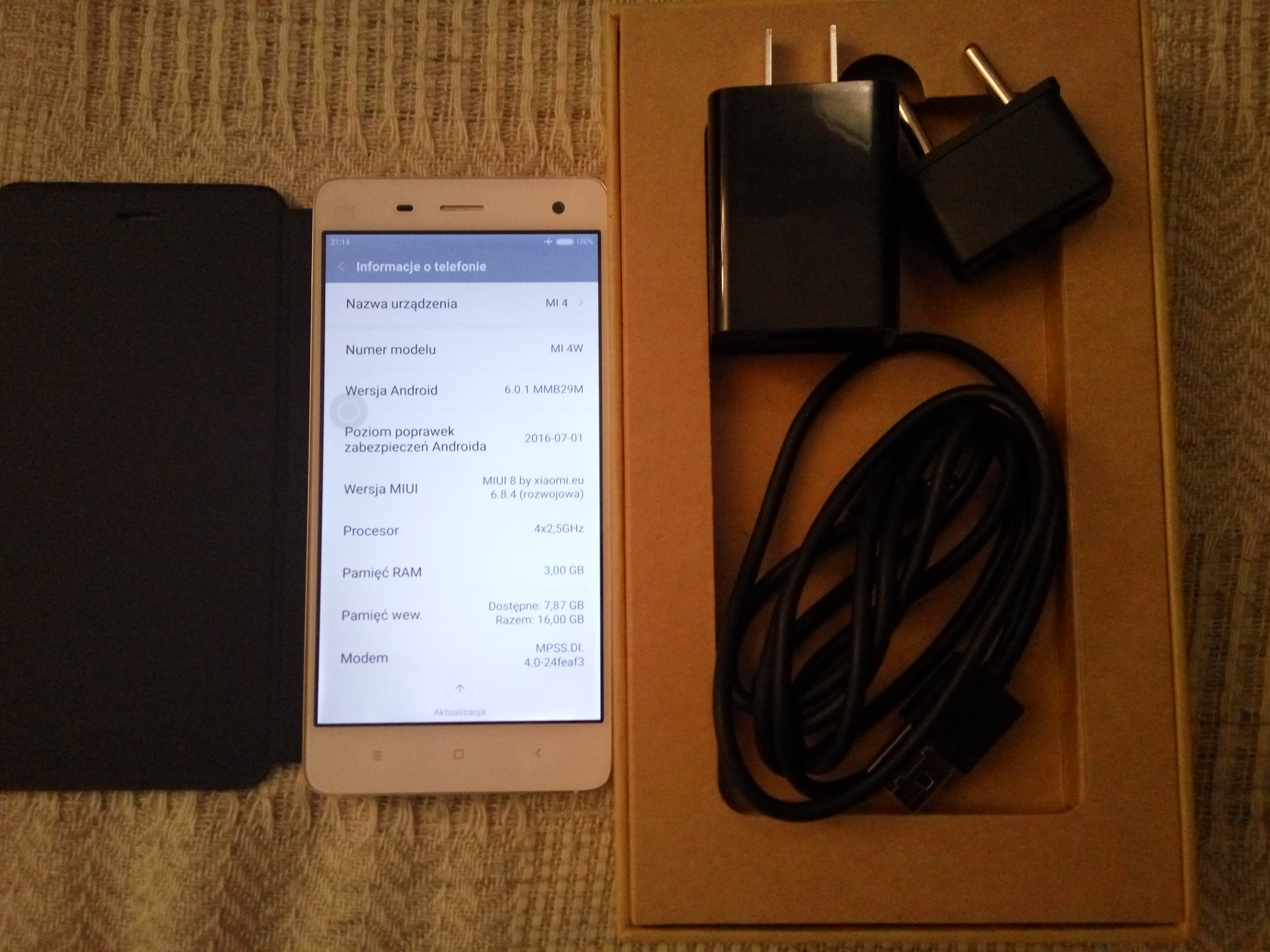 Nazwa przedmiotu: XIAOMI MI 4 WCDMA 3/ 16 GB BIAŁY Opis:Zakupiony we wrześniu 2014 r. w iBuygou. Telefon ma zainstalowane najnowsze oprogramowaniue Miui 8 Polska z dnia 04.08.2016. W oferowanym zestawie jest: ładowarka, kabel, szpilka do tacki sim, chińska przejściówka, pudełko, wszystko oryginalne. Od początku ma założony pokrowiec Flip Cover ( tzn przyklejony na taśmę dwustronną), oryginalny zakupiony wraz z telefonem.( po odklejeniu od plecków jest bezużyteczny). Telefon jest w bardzo dobrym stanie technicznym i wizualnym, posiada normalne ślady używania. Dodatkowo dodaję folię na przód tel również oryginalna Xiaomi szt 3. Cena: 450- 500 zł Aukcja allegro/olx: http://allegro.pl/xiaomi-mi-4-wcdma-3-16-gb-bialy-real-foto-i6401271580.html Kontakt: [email protected] Zdjęcia: