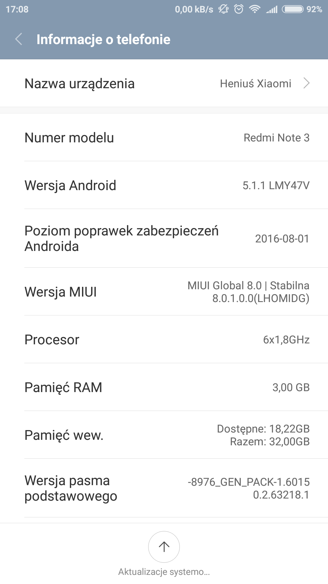 Witam! Jestem posiadaczem europejskiej wersji Redmi Note 3 Pro ze Snapdragonem. Jakiś czas temu wyszła aktualizacja do Androida 6, ale ja jeszcze jej nie dostałem i marne są moje próby sprawdzania aktualizacji. Mam jakiś walnięty ROM? Powiedźcie co ewentualnie mogę zrobić? Jeżeli był taki temat poruszany to przepraszam i proszę o odsyłacze bo nie znalazłem.