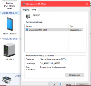 Po podłączeniu kablem USB do komputera, telefon jest widoczny: