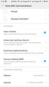 Wg tych ustawień ze screena nie jest czasem tak, że slot 1 (nazwa Orange) , które jak widać na pasku ma sieć 3G ma być defacto do rozmów i dlatego ma sieć 3G, a slot nr 2 nazwany Orange Internet ma być do transmisji danych i tym samym ma na pasku LTE i po lewej stronie nazwy Orange LTE jest wskaźnik transmisji danych informujący, że internet jest pobierany z karty w slocie nr 2? Dobrze rozumiem? Czy już pomieszałem i trzeba przełożyć karty?