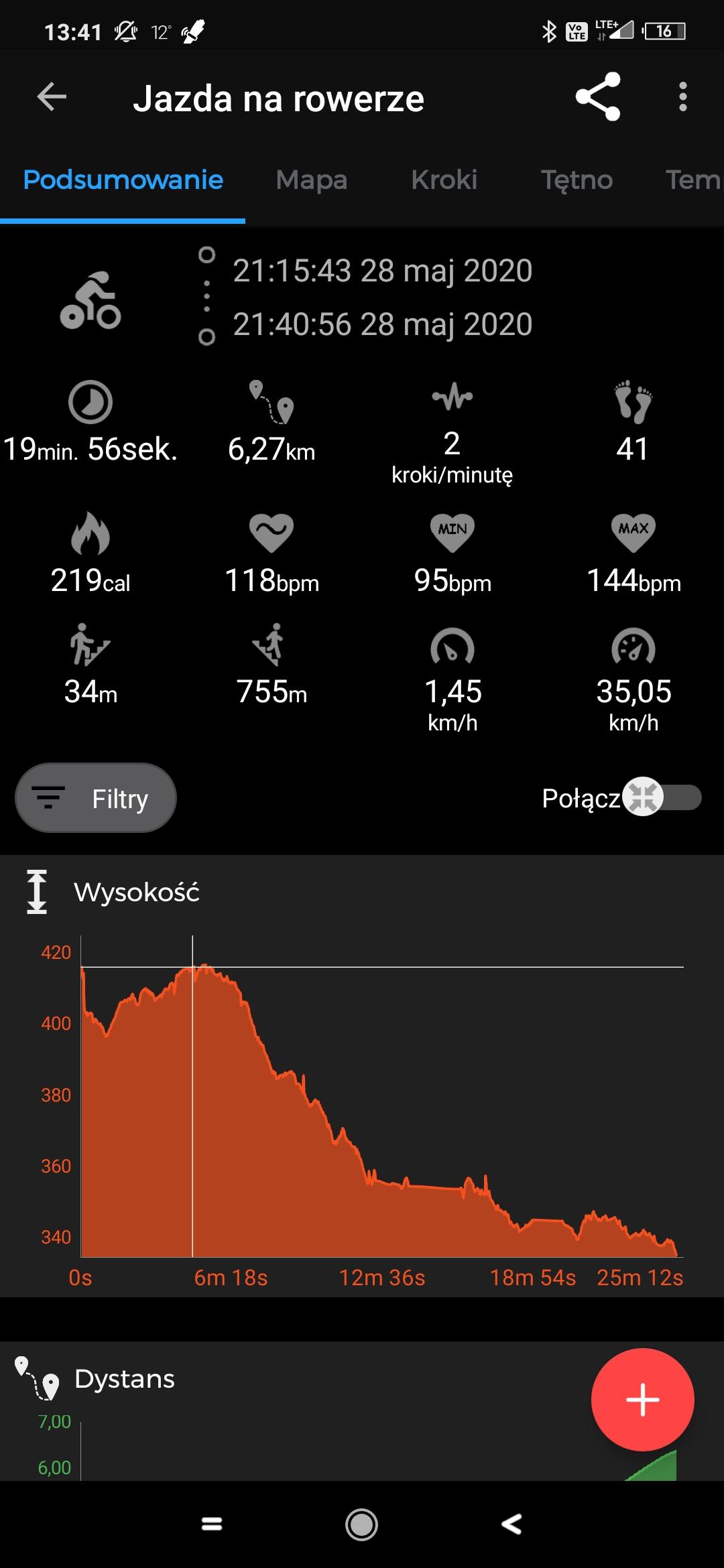 No tak z tym że Endomondo dobrze pokazuje wysokości zainstalowałem że sklepu notify& fitness i ona też głupoty pokazuje . A jak zaeksportuje wyniki do stravy to tam już dobrze pokazuję wszystkie wyniki Wysłane z mojego MI 9 przy użyciu Tapatalka