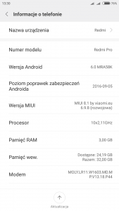 9. Witam Panowie, Od zeszłego roku walczę ze swoim Redmi PRO zakupionym u sprzedawcy na Aliexpress. Telefon dotarł z softem jak na zdjęciach w załączniku. Wersja MIUI: MIUI 8.1 by xiaomi.eu 6.9.8 (rozwojowa). Byłoby pięknie, ale telefon dręczą reklamy, samo startuje WiFi itp... W końcu nie wytrzymałem i myślę sobie "zrobię zmianę na porządny system" i wrzucę prawdziwe, świeże MIUI Polska. Poczytałem, pościągałem i... stanąłem na punkcie z fastboot-em i połączeniem z komputerem. Ten nie chce się połączyć, wpisanie komend nic nie daje, nic nie wnosi. Debugowanie jak najbardziej jest włączone. Fastboot jest odblokowany od początku (sprawdzone kodem *#*#6484#*#*). Jak to przebrnąć dalej? Jest ktoś kto poprowadzi mnie jak "dziecko we mgle"?