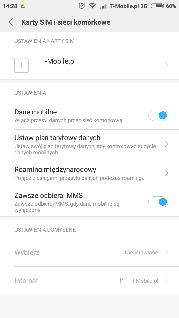 @FromWP Tak, mam włączone dane mobilne. W ustawieniach znalazłam coś takiego jak w załącznikach, nic sama nie ustawiałam, włożyłam tylko kartę MicroSIM do slot'u.