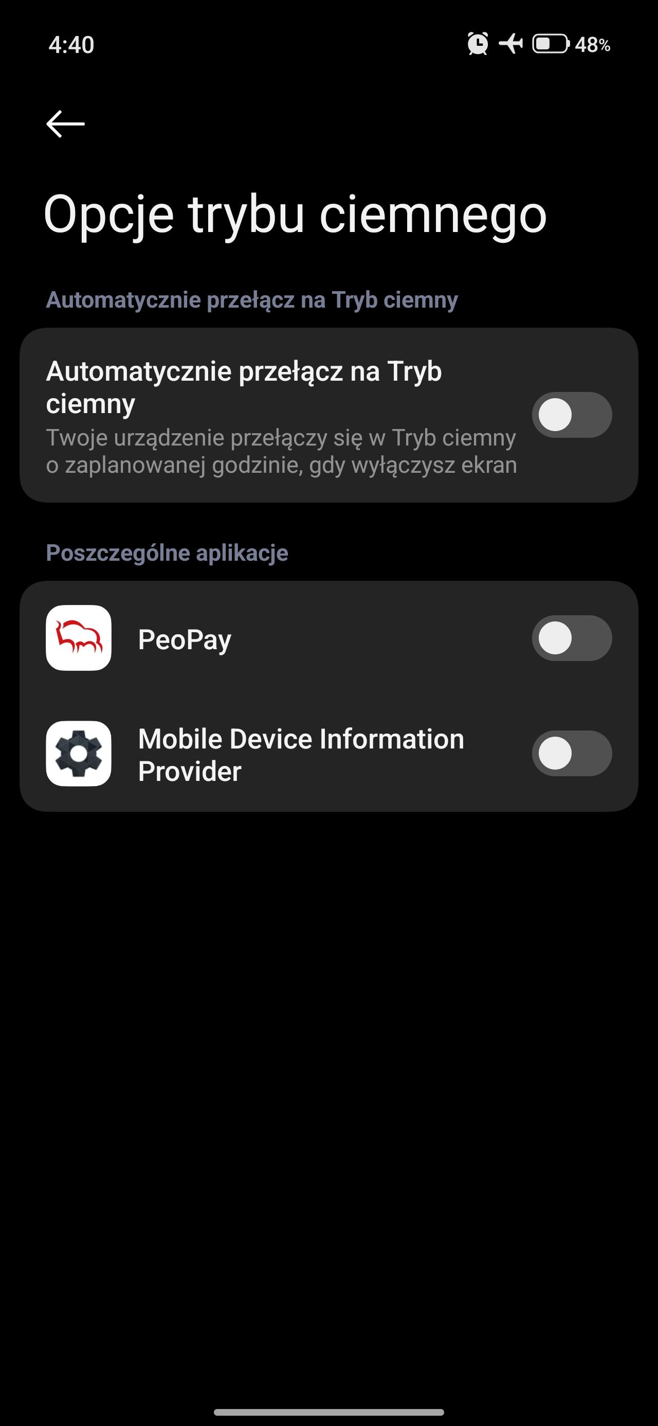 Witam mam problem i nie mogę znaleźć rozwiązania "może źle wpisuje problem w google..." w aplikacji Facebook, gdy daje udostępnij nie widać napisów gdy mam włączony tryb ciemny myślałem że w aktualizacji do hyperos 3 coś się zmieni jednak dalej jest ten sam "bug" czy jest jakieś rozwiązanie? dodam ze czyszczenie pamięci aplikacji na nic się zdało oraz odinstalowanie i ponowna instalacja aplikacji Facebook również pacjent to Xiaomi 15T z najnowszym hyperos 3.0.3.0 adnroid 16 na 15 był ten sam "bug"W opcjach Trybu ciemnego wyłączone.