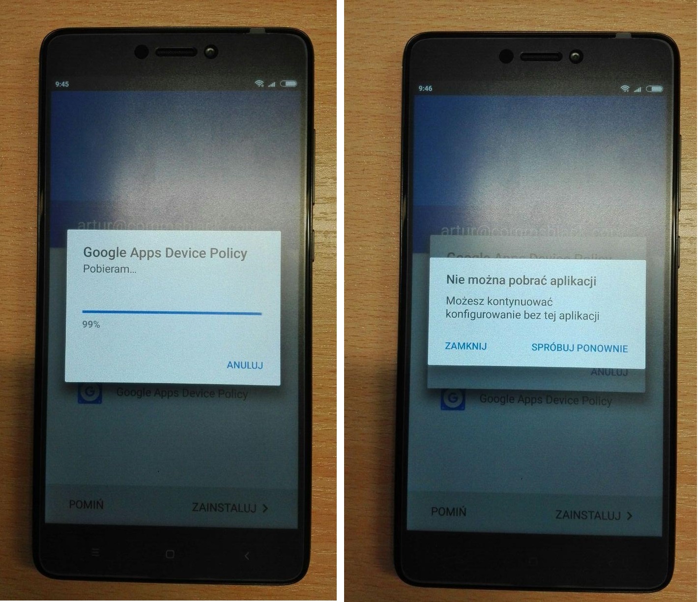 Niestety, przy kolejnych próbach owszem, można dodać to samo konto jeszcze raz, ale nie pobiera się aplikacja Google Apps Device Policy (screen w załączniku). Można pominąć jej pobieranie przy starcie i pobrać ją później z playstore, ale przez to tracę możliwość dodania urządzenia jako wyłącznie firmowego (mogę stworzyć profil do pracy równoległy z prywatnym, ale nie o to mi chodzi).