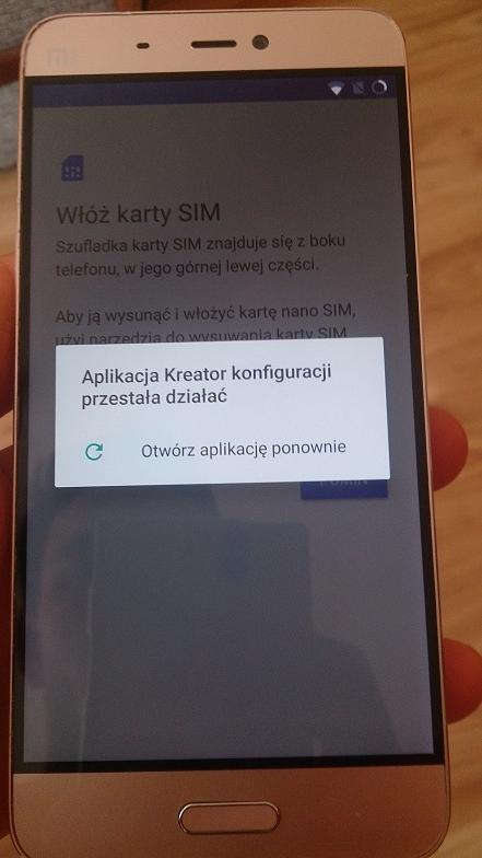 Przywróciłem Mi5 do ustawień fabrycznych i kreator konfiguracji nie działa. Przywróciłem go jeszcze raz i dalej to samo. Na dole wrzucam screeny wyskakującego błędu. Bardzo proszę o pomoc!