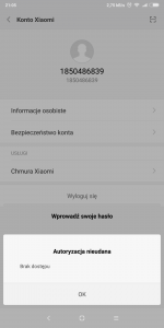 Jestem zalogowany przez mail i chcę wejść w konto xiaomi, żeby się wylogować, to mnie prosi o zalogowanie do zalogowanego już konta. Po wpisaniu hasła wywala błąd autoryzacji, przez stronę xiaomi też nie da się tego zrobić. Bo po wpisaniu loginu i hasła wyskakuje że za dużo prób logowania !A Próbowałem Tylko Raz! Jakby w ogóle nie było połączenia z ich serwerem. Co parę minut mi wyskakuje pod paskiem funkcji Błąd logowania na konto (załączam zdjęcia) Pomocy bo zaraz pójdzie pod młotek. Próbowałem już chyba wszystkiego. Na ich forach multum ludzi miało i ma ten problem.
