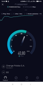 6. Pokazałem już screen gdzie telefon ma znaczek LTE+ w sieci EE w Polsce nie nigdy ten znaczek nie wyskakuje, zrobiłem nawet screen z 4 pasmami LTE i tak + się nie pojawiło, a w sieci EE pojawia się bez problemu w samym LTE2600 lub nawet w samym LTE 1800. Co do prędkości to sieć mobilna nigdy więc prędkości mogą się wahać. Dodaje screen z Polski mimo pełnych 4 częstotliwości LTE+ się nie pokazuje. Dodaje też ostatni screen z lotniska z LTE+, mimo roamingu to w sieci 3 bez + przy LTE prędkości były między 3 a 5Mb/s w Londynie max dobijało do 18Mb/s, a w sieci EE spokojnie się wyciągało ponad 40Mb/s, trzeba brać pod uwagę roaming więc roamingowi dostają ochłapy prędkości. Nie kupowałem lokalnej karty EE, bo nie było sensu na krótki wypad.
