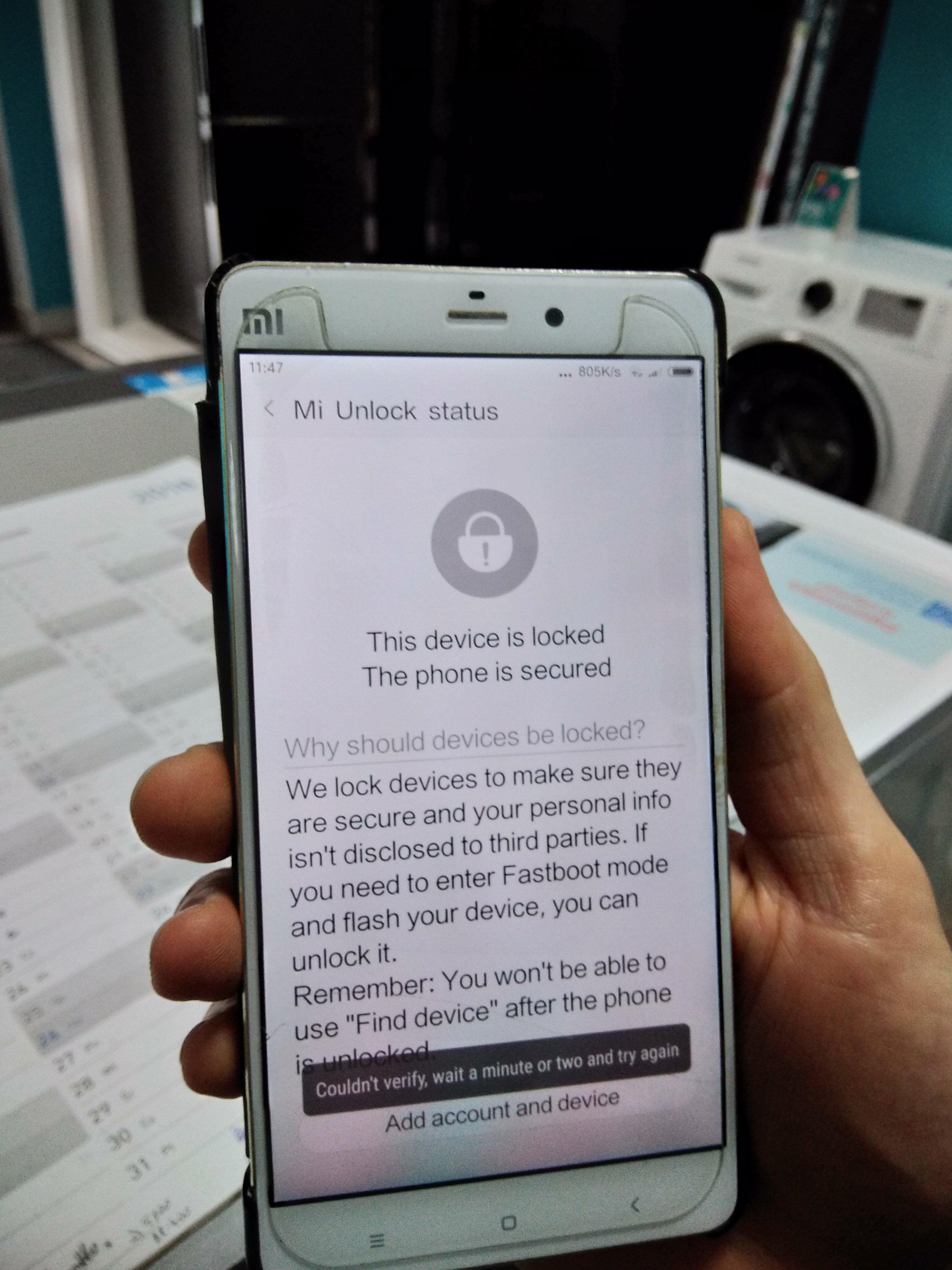 1. Witam Mam duży problem z odblokowaniem bootloadera w telefonie Xiaomi Mi Note Pro. Wykonuje wszystko według instrukcji i pomimo nawet założenia innego konta, kombinowania wylogowywania oczekiwania i wykonania wszystkiego wielokrotnie wciąż jest ten sam komunikat. Może ktoś ma jakieś pomysły co można zdziałać bo brakuje sił..... Mui wersion MUI 9.2 STABLE. Na kontach Xiaomi seciurity Level na 100 punktów ogólnie ustawione wszystko co trzeba według poradników a pomimo tego zawsze ten sam błąd Couldn't verify, wait a minute or two and try again