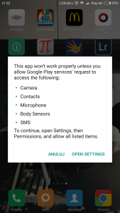 Cześć, mam problem na który rozwiązania szukam już dłuższy czas i nic, chodzi o.to, że przy włączaniu niektórych aplikacji wyskakuje mi taki komunikat z załącznika pierwszego co np w przypadku aplikacji OTOMOTO powoduje jej zamknięcie, a w przypadku Gmaila również wyskakuje, ale mogę nadal korzystać. Najgorsze jest to, że nie mogę przyznać tych uprawnień, bo mimo roota itd no nie da się. Zaczęło się to od aktualizacji z 10 marca 2016 (mam 6.0 xiaomi mi note) i trwa aż do dziś, bo posiadam najnowsza aktualizacje z miuipolska z wszystkimi dodatkami. W panelu sterowania nie mogę przyznać, bo nie ma usług play, nigdzie nie mogę -