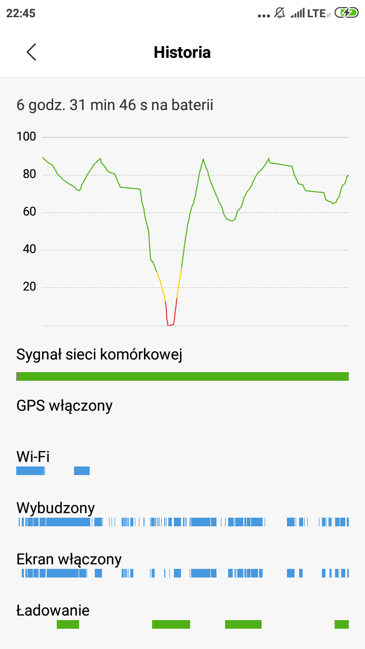 Dzisiaj bez żadnego powodu telefon w kieszeni w ok. pół godziny wyładował się całkowicie Gdy go schowałem było ponad 70%, wszystkie aplikacje, GPS powyłączane. Po pół godzinie zauważyłem komunikat o drenażu i 20%, pi chwili 7%, a może z minutę później 1% i 0. Po podłączeniu ładowarki najpierw prawie nie ładował się, a po osiągnięciu 2% zaczął już do końca ładować się szybko. Nigdy wcześniej nie miałem takiej sytuacji. Dodam że na ogół zawsze na niskim poziomie rozładowuje się wolniej, a ładuje szybciej, a dzisiaj było odwrotnie